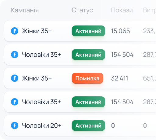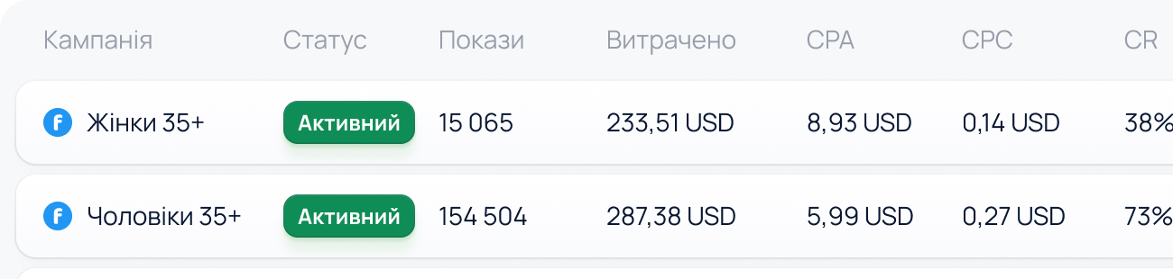 Регулюй кампанії, адсети, оголошення в одному вікні: від запуску до управління бюджетом та відстеження витрат
